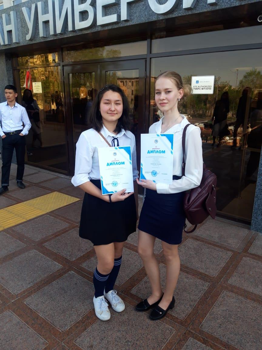 18 сәуір 2022 0 1 2 3 4 5 Награждение учеников, городской тур предметной олимпиады по биологии и физике Физика, 3 место - Казакова Полина, 11А класс, (учитель - Курбанова Г.М.)Биология, 3 место - Нурузова Маргарита, 10Б класс (учитель - Тенгизбаева Ж.Т.)