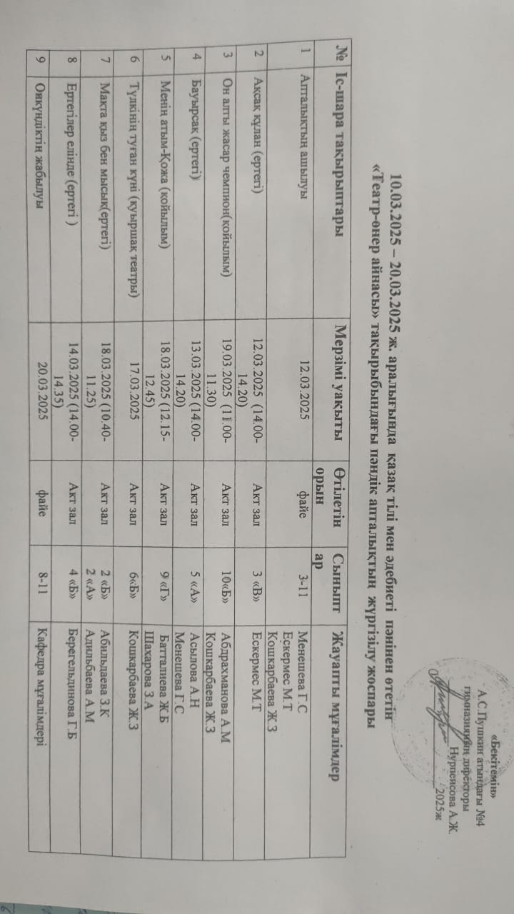 12 наурыз 2025 0 1 2 3 4 5 Қазақ тілінің әдістемелік біріздендіру онкүндігіне арналған іс-шаралар кестесі