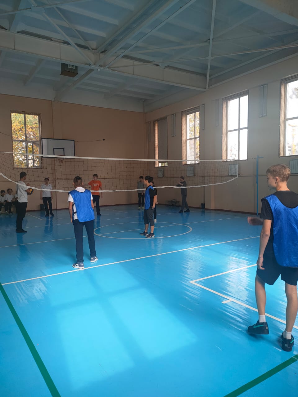 18 қазан 2023 0 1 2 3 4 5 Қазақстан Республикасының күніне орай. К Дню Республики Казахстан Соревнования по волейболу среди 9тых классов, посвященные дню Республики Казахстан.Спортивный зал