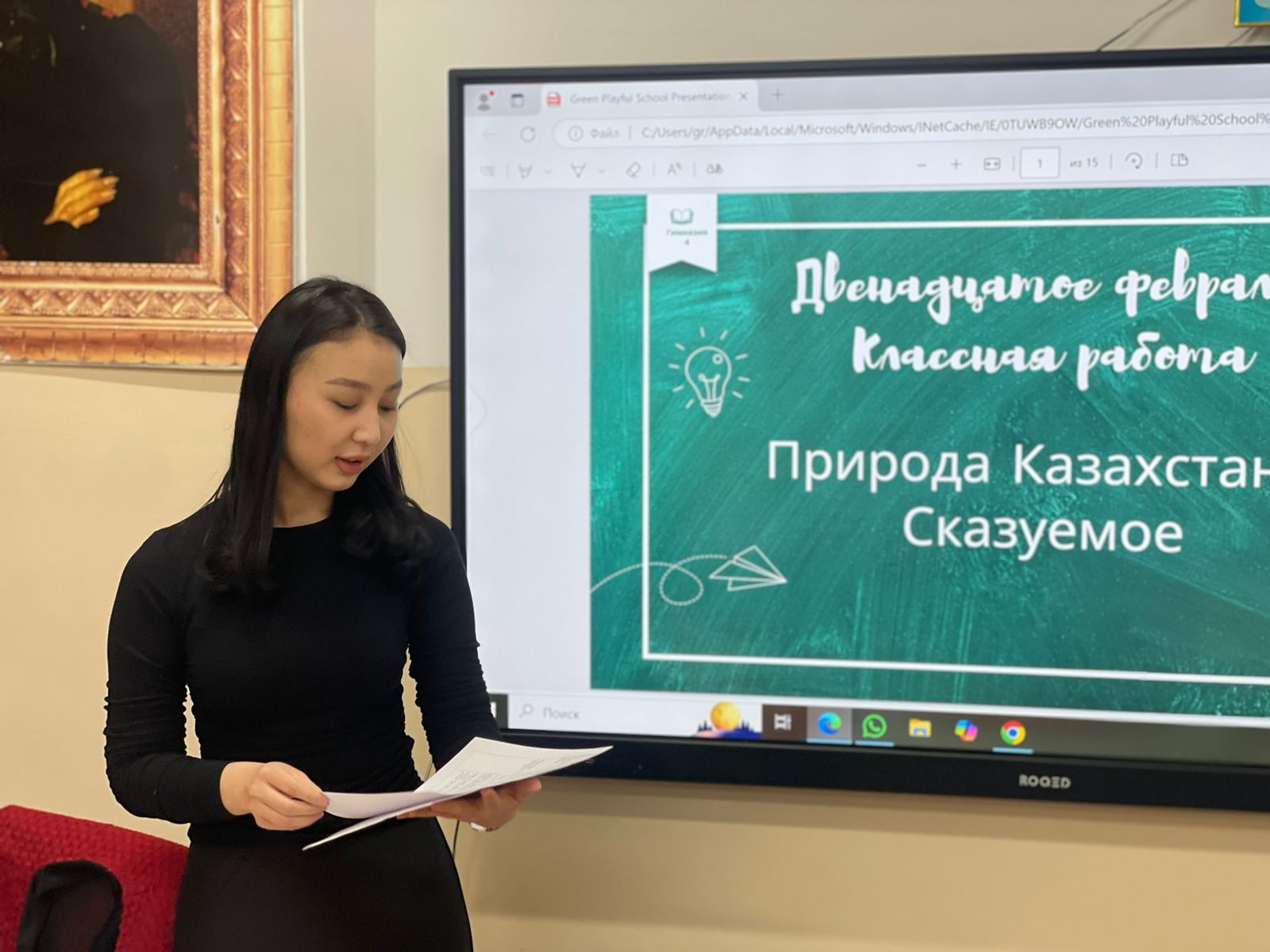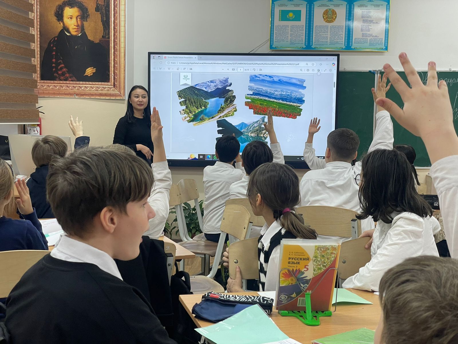 Урок русского языка в 5 Б классе на тему: «Природа Казахстана. Способы выражения сказуемого» проводит Утемуратова Аружан Нурлановна. Учащиеся вовлечены в активную работу! Учитель подготовила самые различные задания с использованием современных технологий, и это, безусловно, повлияло на качество урока. Спасибо учителю и её ученикам за знания и мотивацию к обучению!