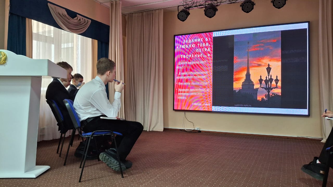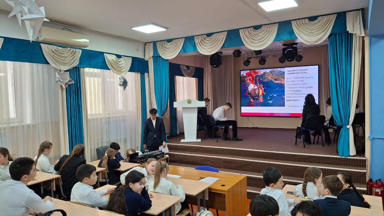Сегодня наши юные любители истории состязались на школьной олимпиаде "Сокровища цивилизации". Участники из 9-11 классов, а также зрители выдвигали версии предназначения античных акведуков, разгадывали "Вселенную" знаменитой Каргалинской диадемы, увидели величественный Петербург глазами А. С. Пушкина, вспомнили еще ряд замечательных достижений мировой культуры. Победители олимпиады будут объявлены завтра, во вторник, на закрытии Пушкинской недели. Организаторы олимпиады - учителя истории М. С. Сеитова и Д. П. Щербаков.
