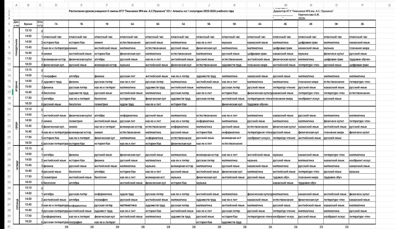 16 қыркүйек 2025 2025-2026 оқу жылының I жартыжылдығына арналған 1 және 2 ауысымның сабақ кестесі 1-ауысым2-ауысым