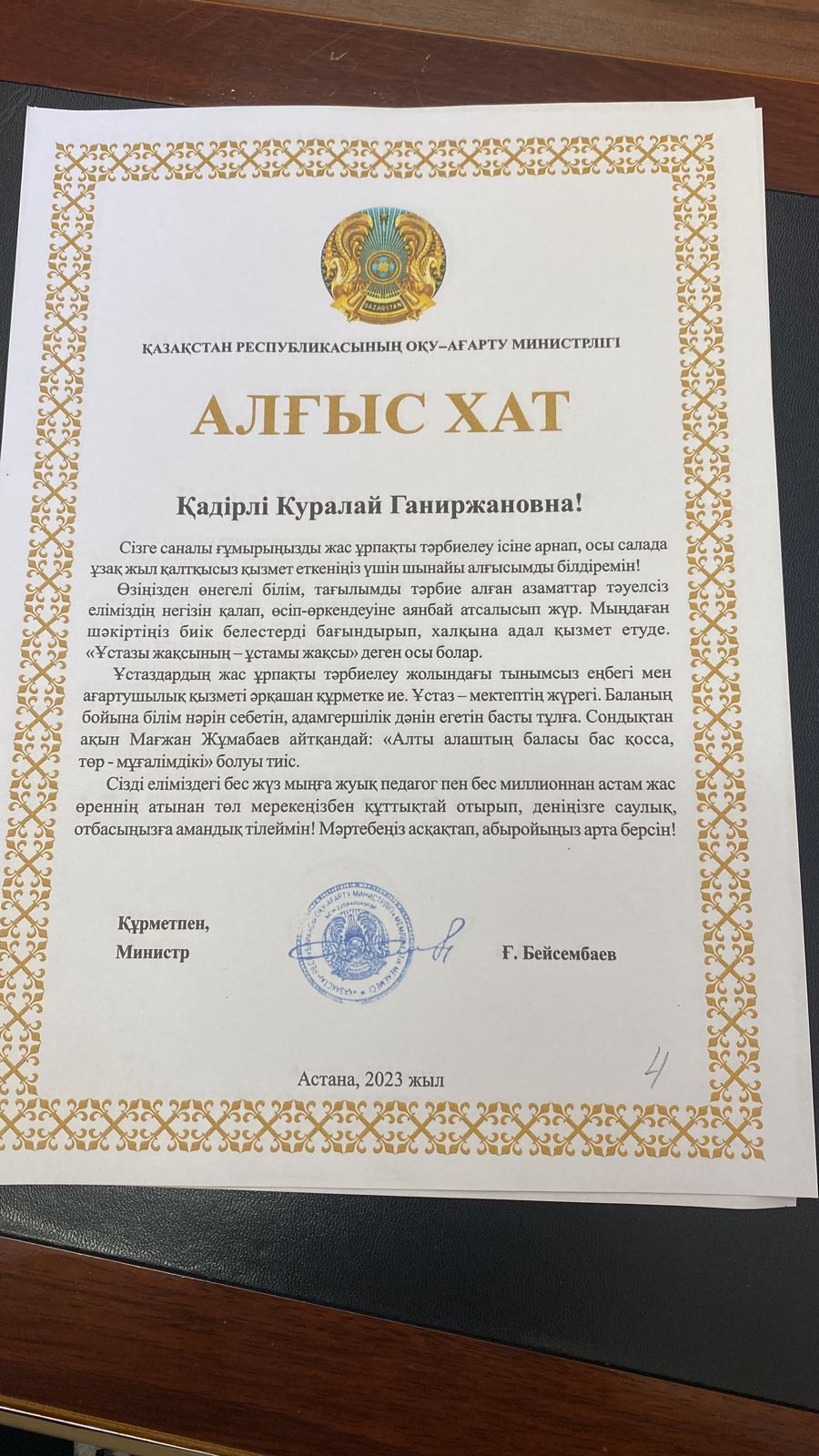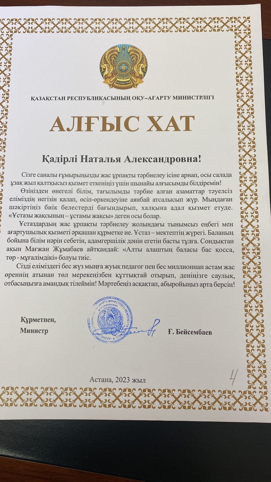 25 қазан 2023 0 1 2 3 4 5 Алғыс хаттары. Благодарственные письма Накануне дня Республики от министра просвещения получили Благодарственные письма следующие ветераны,поздравляем от души!Вы заслужили,вы лучшие!