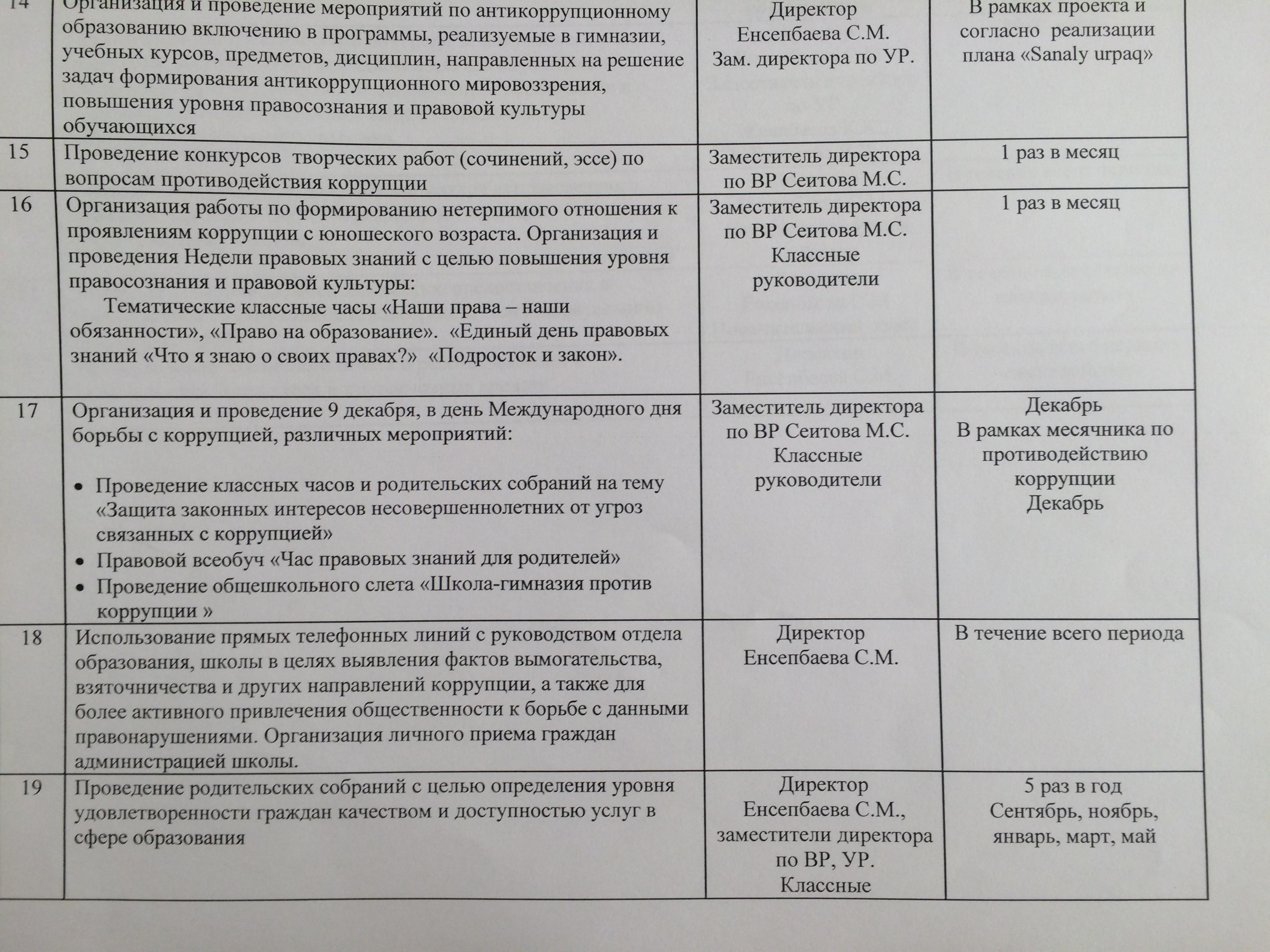 30 қазан 2020 0 1 2 3 4 5 План по формированию антикоррупционной культуры в КГУ "Гимназия №4 им.А.С.Пушкина" на 2020-2021 у.г.