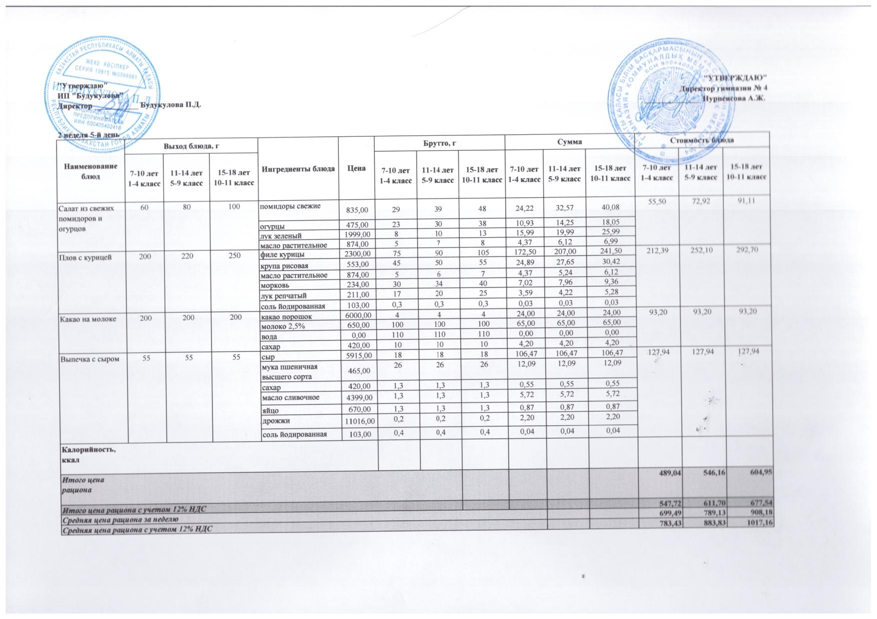 КГУ "Гимназии №4 им. А.С.Пушкина" » Тамақтандыру » Бюджет қаражаты есебінен орта білім беру ұйымдарында білім алушыларды тегін тамақтандыруды ұйымдастыру үшін төрт апталық ас мәзірі