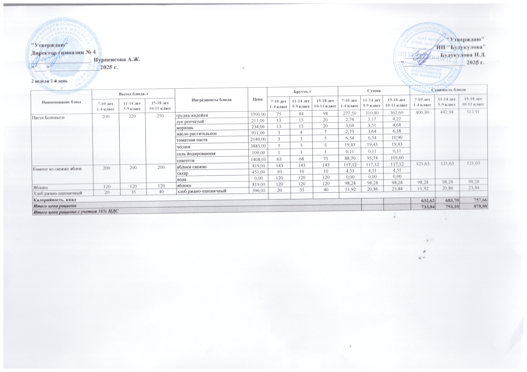 13 қаңтар 2026 0 1 2 3 4 5 Бюджет қаражаты есебінен орта білім беру ұйымдарында білім алушыларды тегін тамақтандыруды ұйымдастыру үшін төрт апталық ас мәзірі