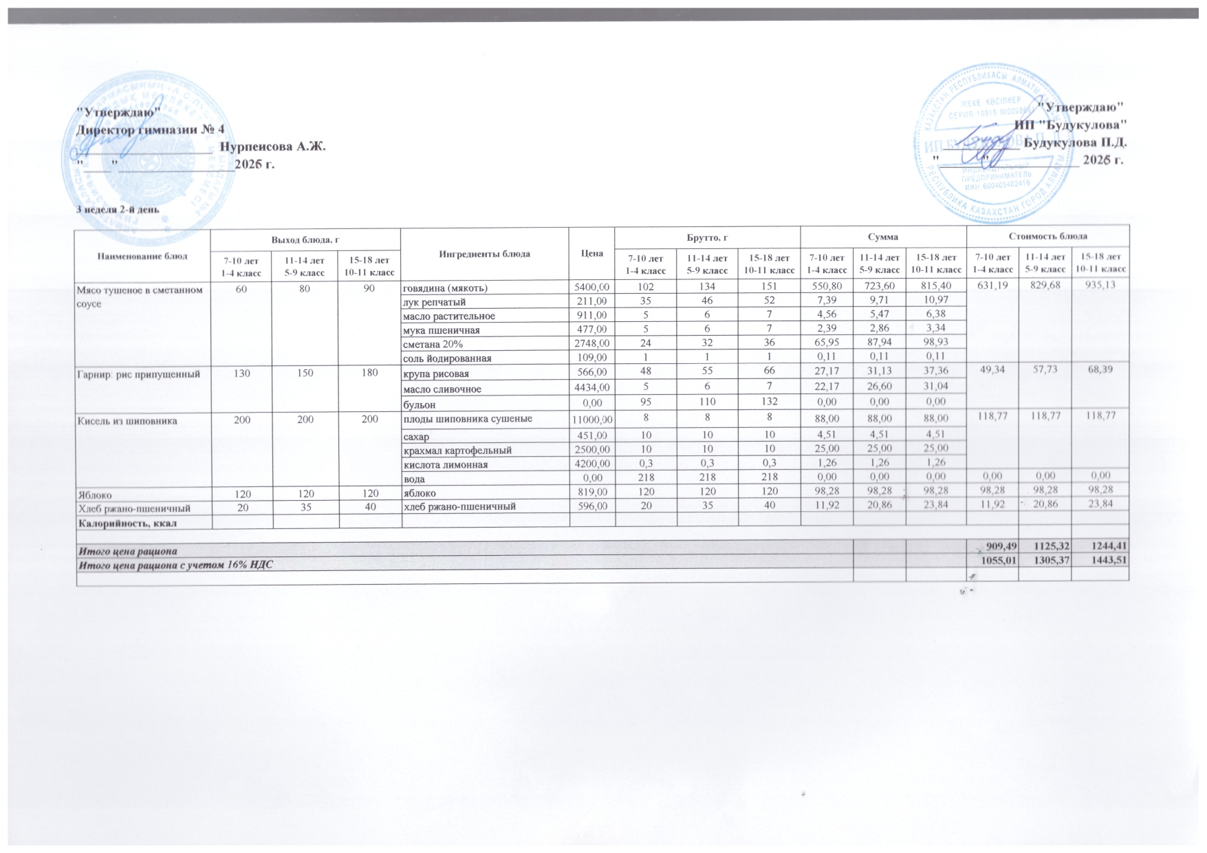20 қаңтар 2026 0 1 2 3 4 5 Бюджет қаражаты есебінен орта білім беру ұйымдарында білім алушыларды тегін тамақтандыруды ұйымдастыру үшін төрт апталық ас мәзірі